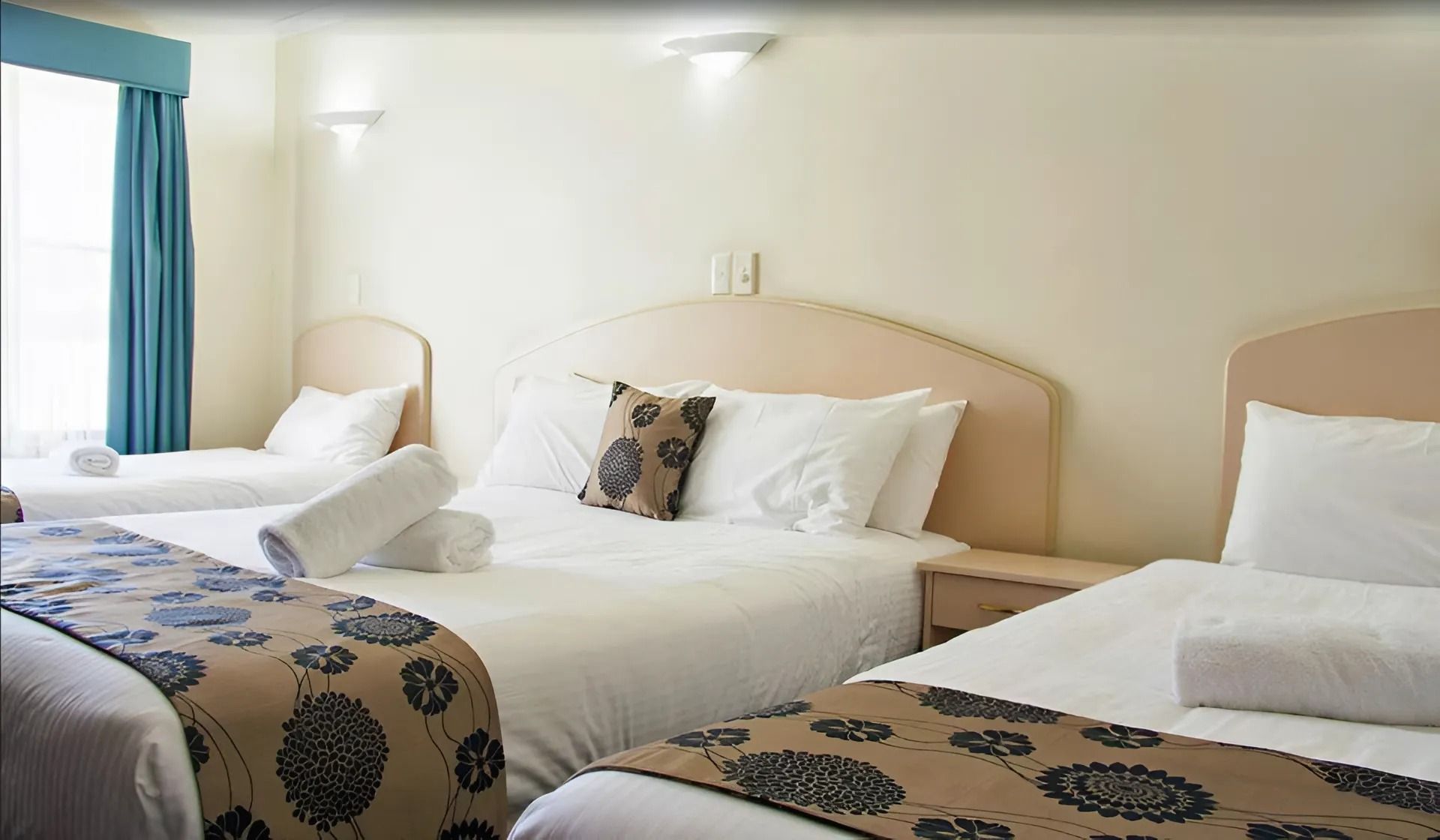 1 queen bed and 3 single beds. Flat screen TV, A/C, fridge, Tea/coffee making facility. Free Wifi. Ground Floor. Allocated Parking. PET FRIENDLY.