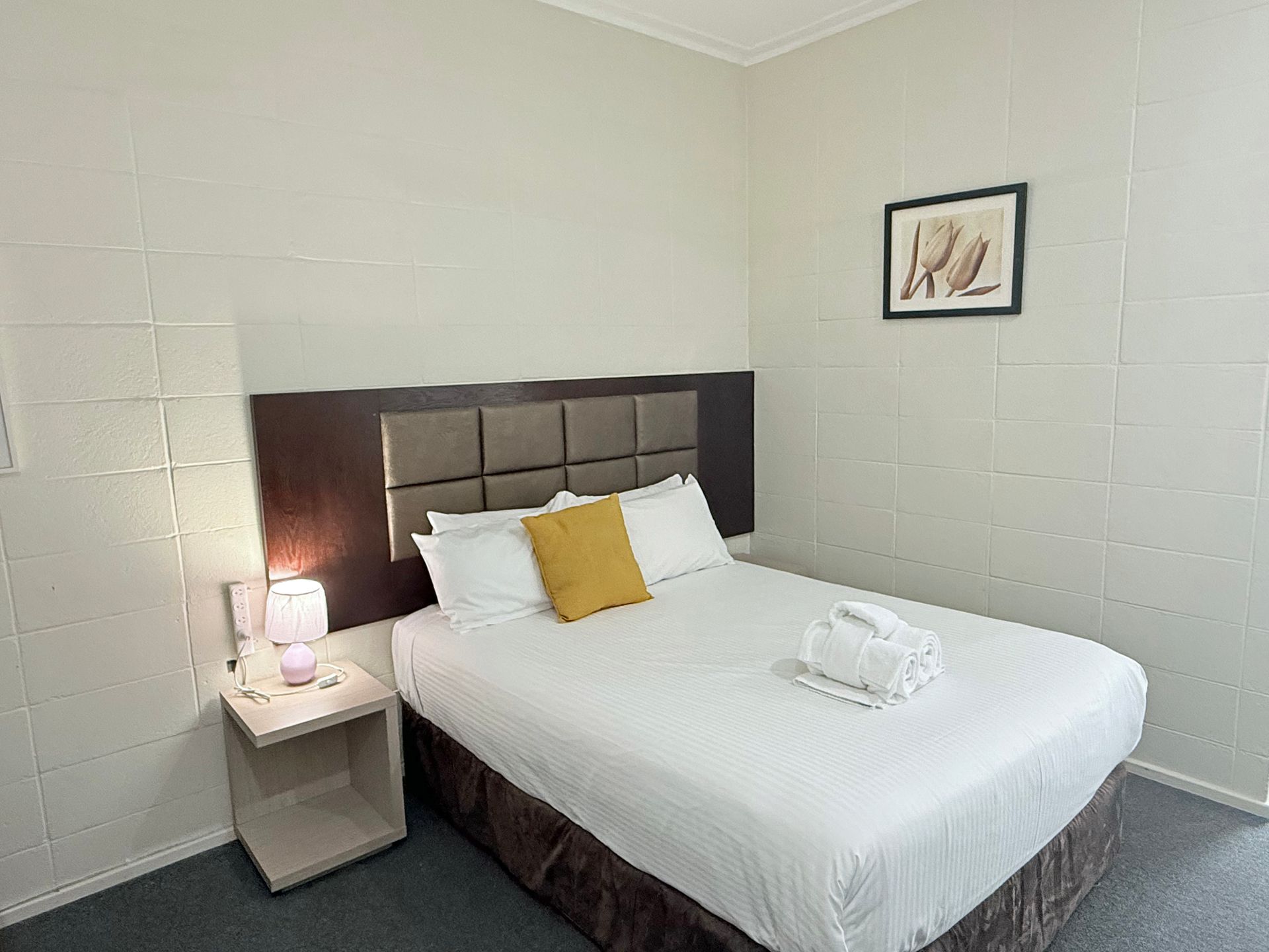 Clean and spacious ground floor room located closest to the highway. Suite has a queen bed and ensuite bathroom plus all the usual extras. Free WiFi and allocated parking are included.
